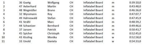 Besonderer Dank für die Unterstützung bei der Zeitmessung geht an das Team der SUP Tour Schweiz sowie an die Sponsoren Indiana SUP, Ensis Paddles, Airboard, Mobiliar Versicherung und die Bar Bogen17.