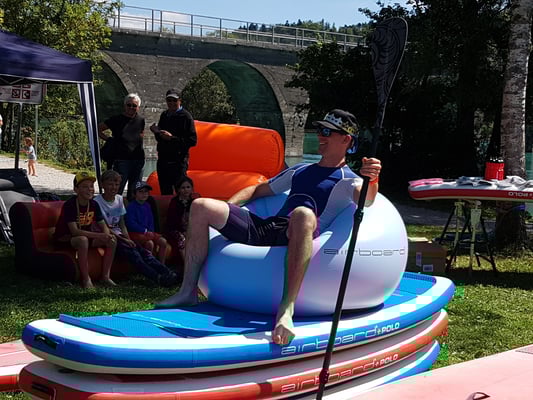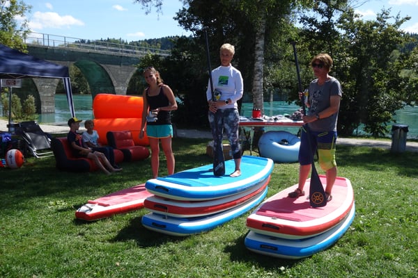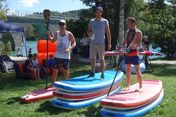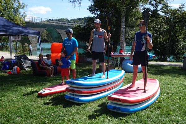 Mehrere SUPer/innen starten miteinander und umrunden gleichzeitig eine Boje - Getümmel, Spass und Abkühlung sind garantiert!